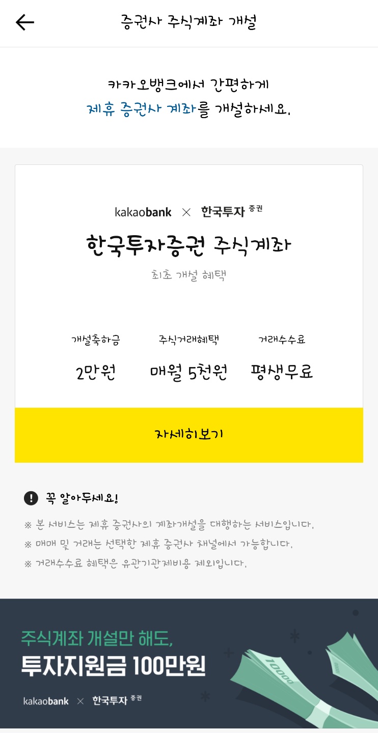 카카오뱅크 한국투자증권 BanKIS 뱅키스 계좌 개설 이벤트 현금 이벤트 본문