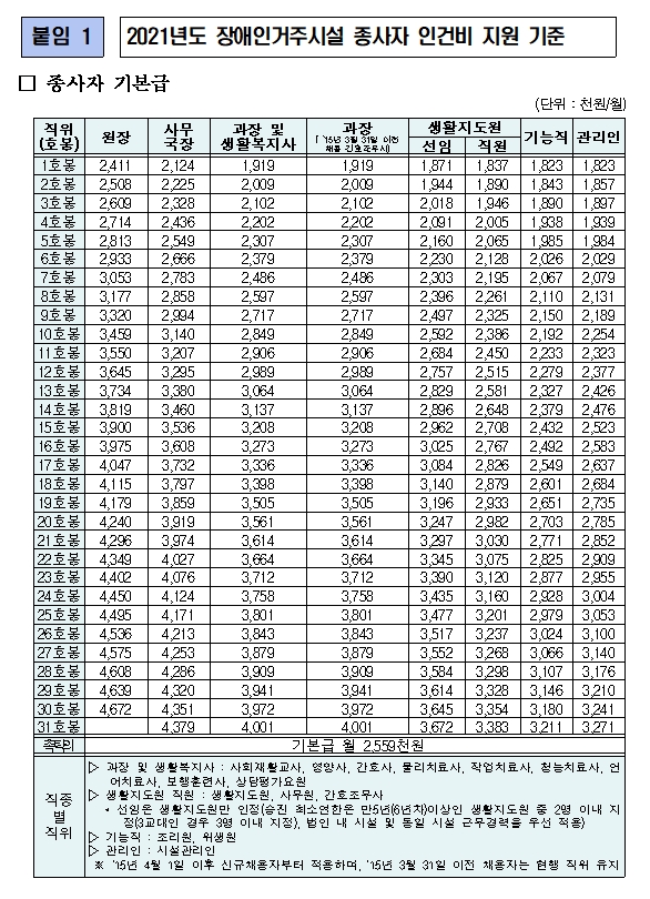 2021년 보건복지부 장애인거주시설 인건비 가이드라인 운영지원사업 본문