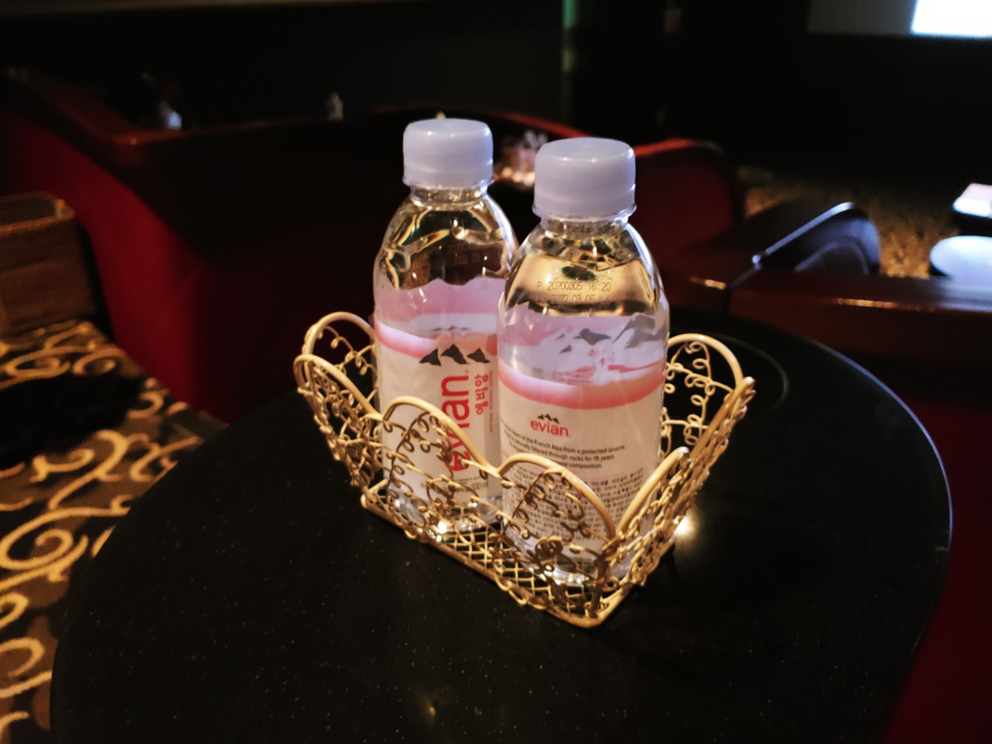 상영관 안에는 이렇게 에비앙 생수가