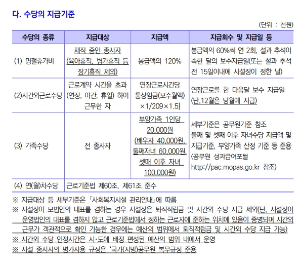 | 서울시 2021년 사회복지시설 종사자 처우 개선 및 운영계획 인건비 지급기준 (0) | 2021.01.07 |