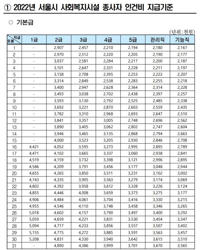 | 2023년 서울시 사회복지시설 종사자 인건비 지급기준, 처우개선 및 운영계획 (0) | 2023.01.03 |