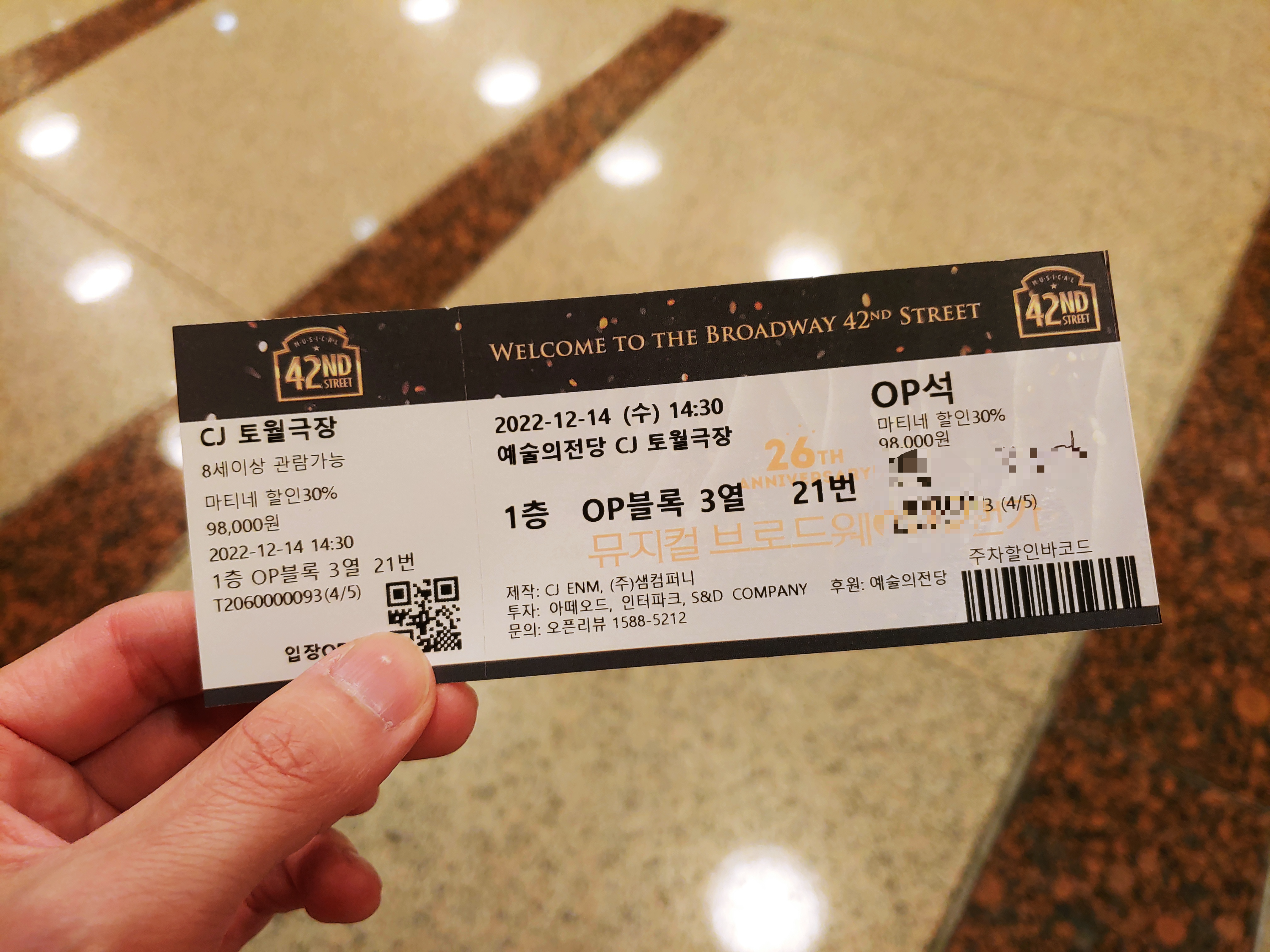 뮤지컬 브로드웨이 42번가, 예술의 전당에서 공연 관람시 주차요금 본문