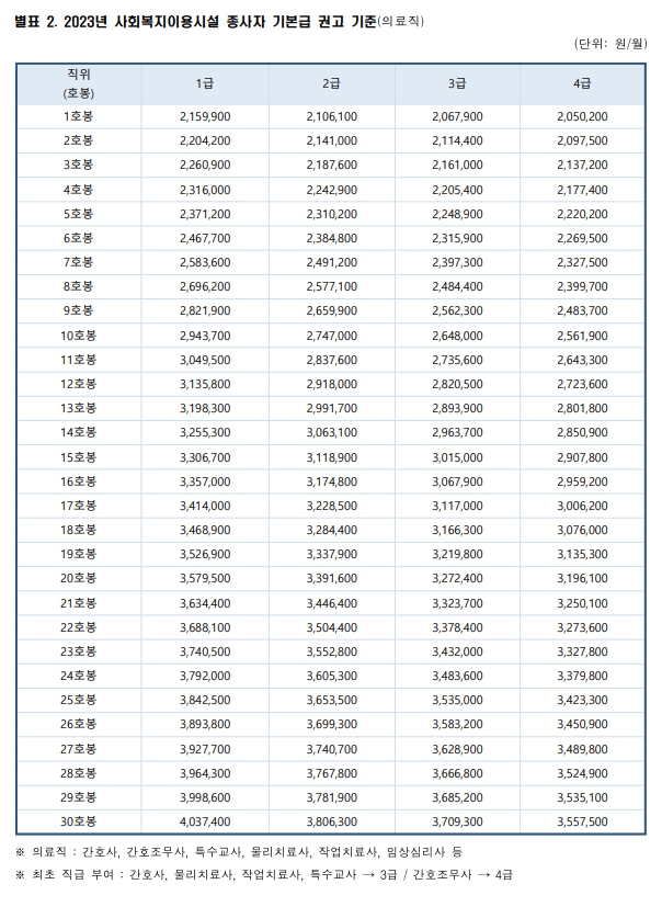 2023년 사회복지시설 종사자 인건비 가이드라인
