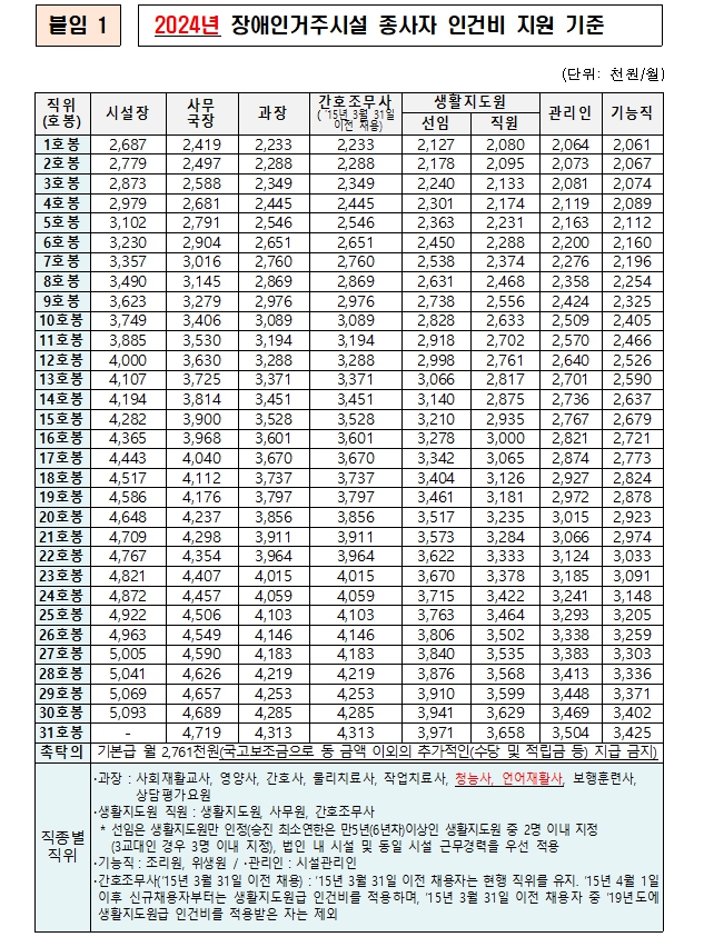 2024년 장애인거주시설 종사자 인건비 지원 기준 가이드라인 보건복지부 본문