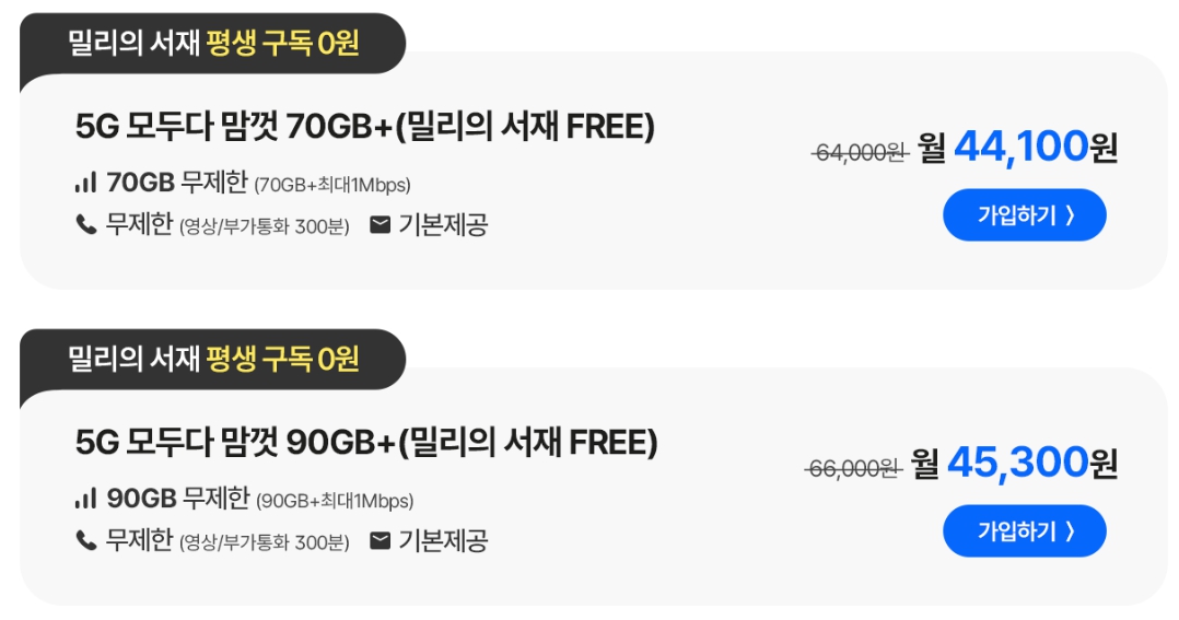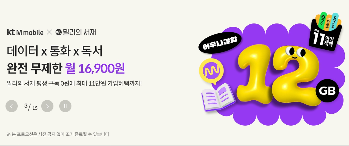 드디어 정착한 알뜰폰 KT M 모바일, 밀리의 서재 제휴 요금제, 밀리의 서재 무료 구독 본문
