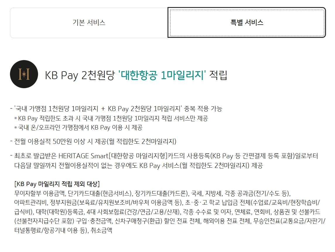 국민카드 헤리티지 스마트, HERITAGE Smart [대한항공 마일리지형], 마일리지 혜택 좋은 신용카드, PP카드 발급 신용카드 본문