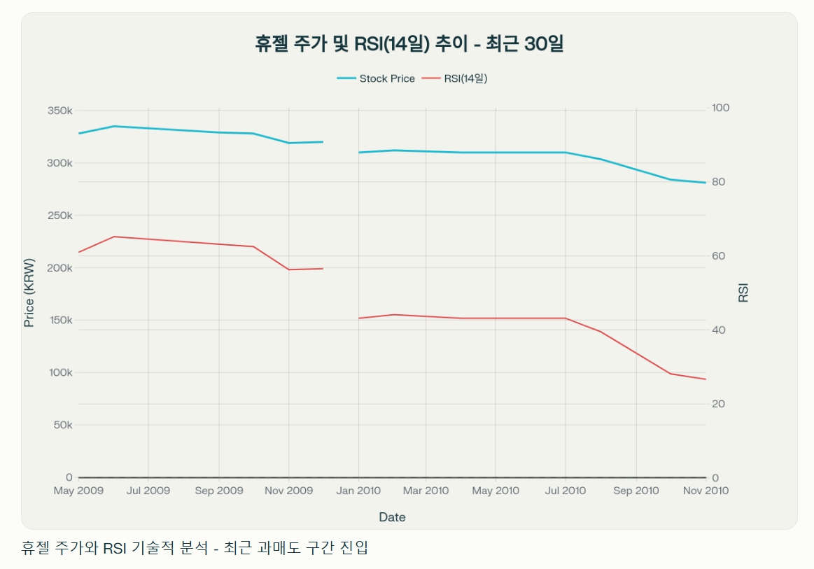 휴젤 주가와 RSI 기술적 분석 - 최근 과매도 구간 진입