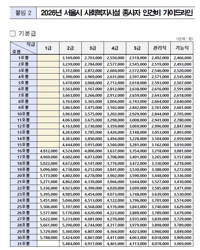 2026년 서울시 사회복지시설 종사자 인건비 가이드라인 본문